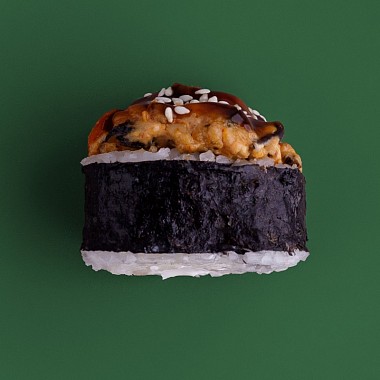 Состав: мидии салатные, сливочный сыр, спайси соус, унаги соус, кунжут.