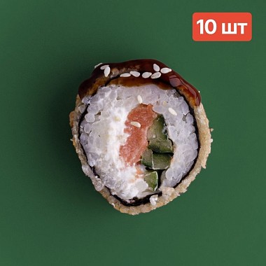 Классический ролл с лососем, сливочным сыром и огурцом, но в новом изысканном формате: темпура, унаги соус и кунжут делают ролл максимально пикантным!